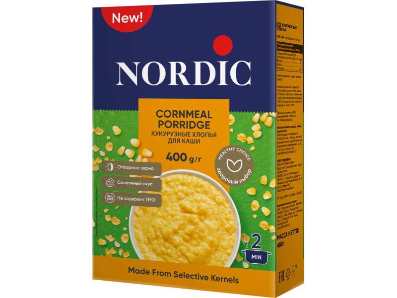 NORDIC եգիպտացորենի փաթիլները պատրաստվում են միայն լավագույն եգիպտացորենի հատիկներից, որոնք մանրակրկիտ մաքրվում, գոլորշու մեջ են մշակվում և մանրացվում։