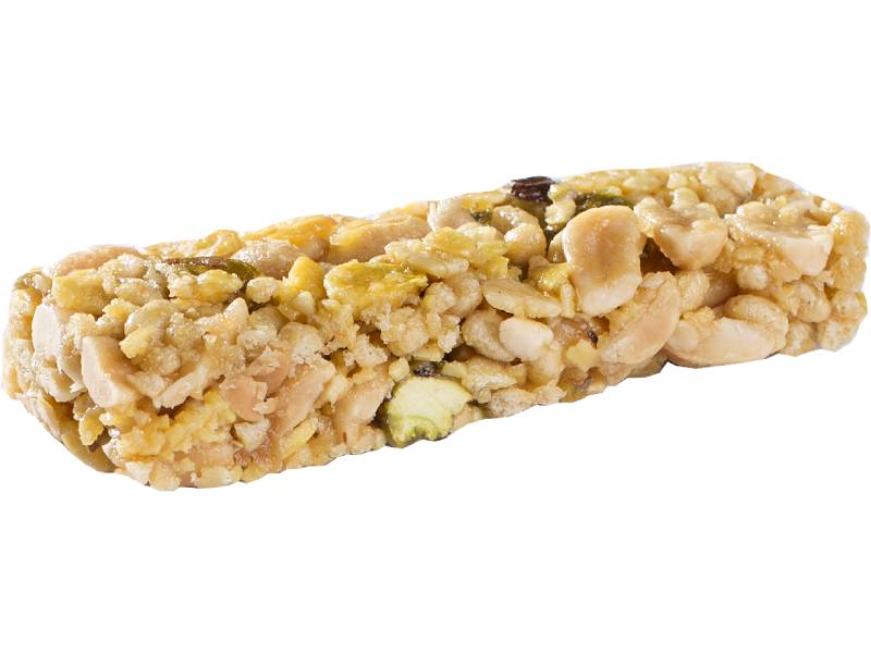 գետնանուշ 34%, եղերդակի արմատի մանրաթել, սոյայի փաթիլներ 15%, պիստակներ 12%, սոյայի չիպսեր 10% (սոյայի սպիտակուցի մեկուսացում 87%, տապիոկայի օսլա, աղ), խոնավեցնող նյութեր (գլիցերին, ռապսի յուղ, բրնձի ալյուր) էմուլգատորներ (ռապսի լեցիտին, բնական բուրավետիչ) հակաօքսիդանտներ (ասկորբիլ պալմիտատ, բնական էքստրակտ՝ տոկոֆերոլների բարձր պարունակությամբ): Կարող է պարունակել այլ ընկույզների հետքեր: